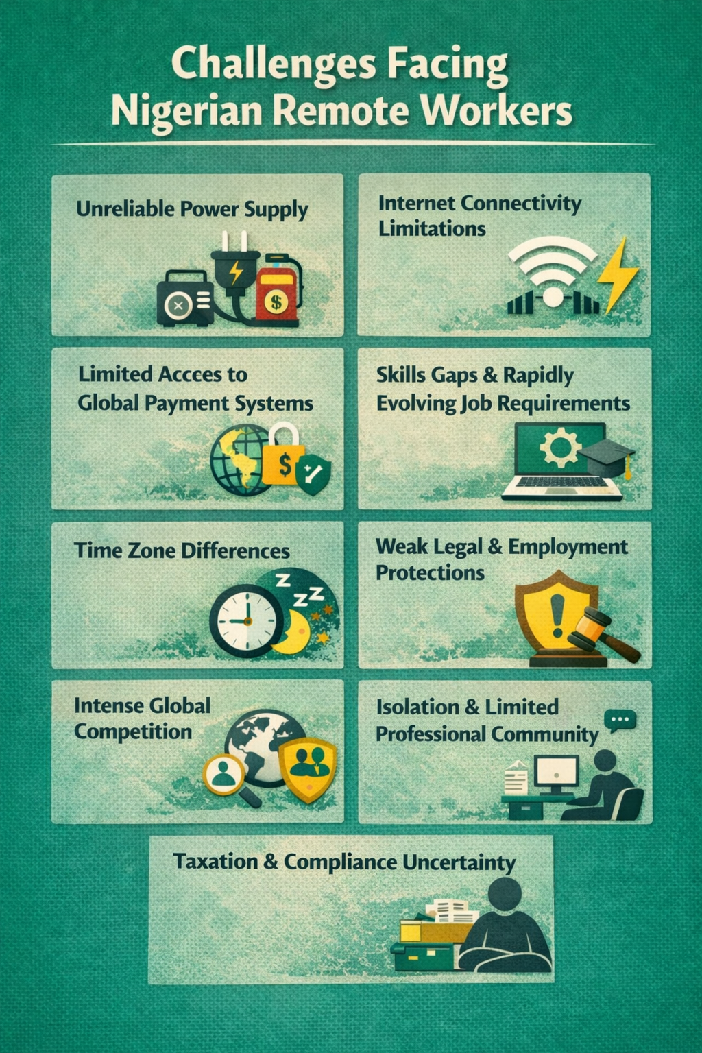 Despite the expansion of remote jobs in Nigeria, remote workers continue to face several persistent challenges: