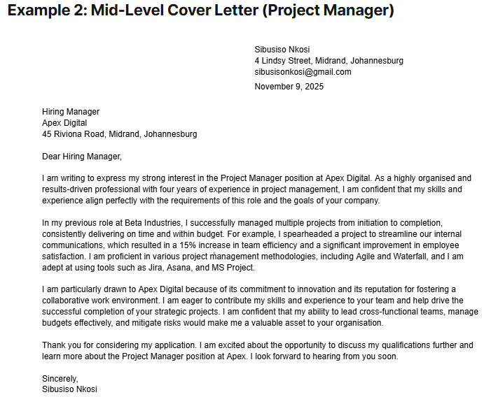 You need a career change cover letter format when transitioning into a new industry or profession. Since your previous job titles may not directly match the role you are applying for, focus should be placed on transferable skills such as leadership, communication, problem-solving, and technical knowledge. This letter explains why you are pursuing a new career direction and how your experience prepares you for success.