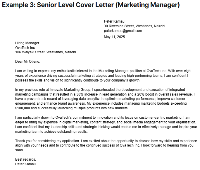In this part of the letter, focus on your most relevant skills, experiences, and accomplishments. Provide examples or measurable results whenever possible to demonstrate your impact.
